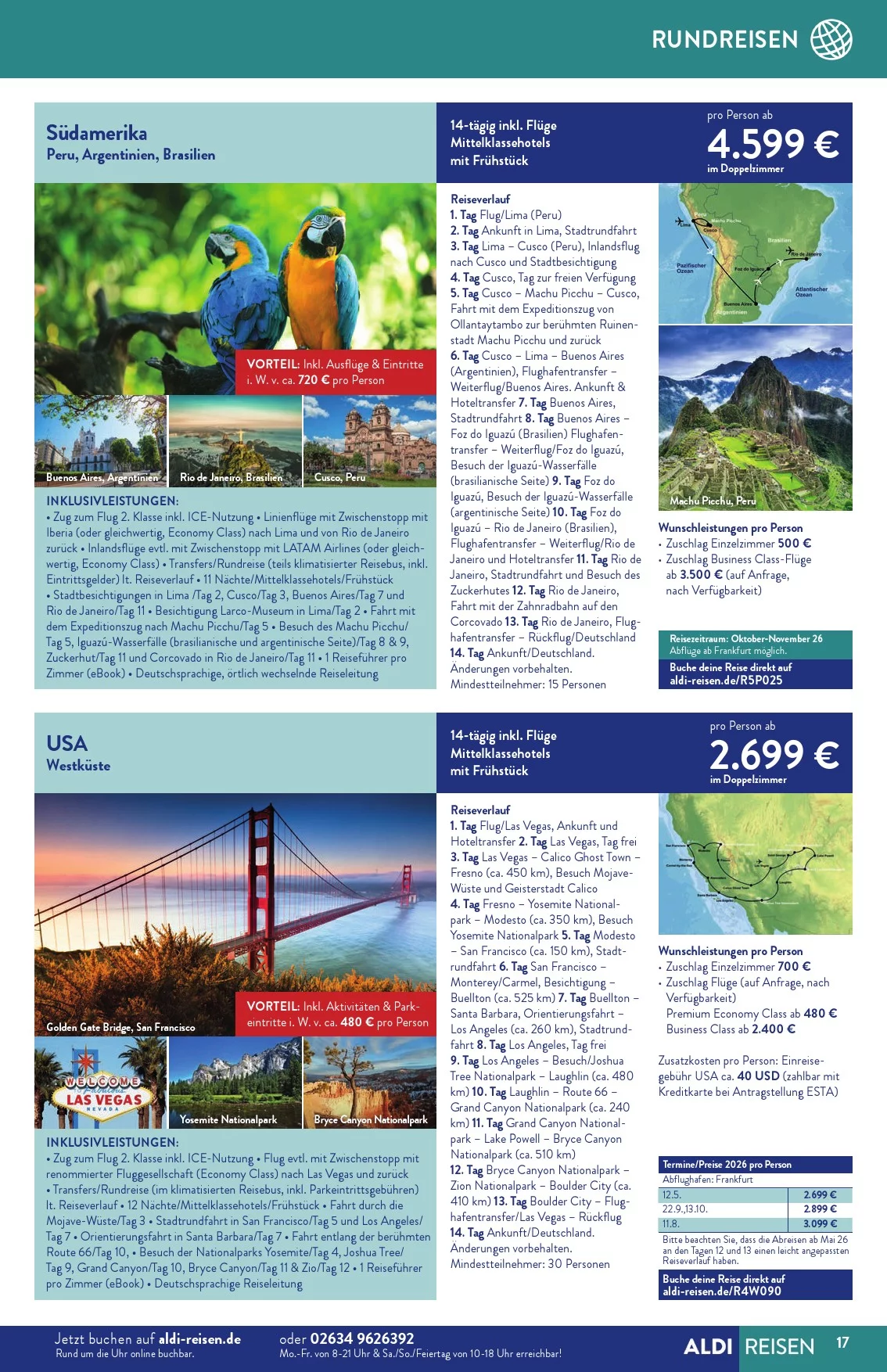 Der Aldi Süd Reisen März 2026 Online-Prospekt zeigt ✈️ starke Angebote mit großen Rabatten ?, Rundreisen ? und Deals ab Montag ?, die sich bequem online zum Blättern entdecken lassen.