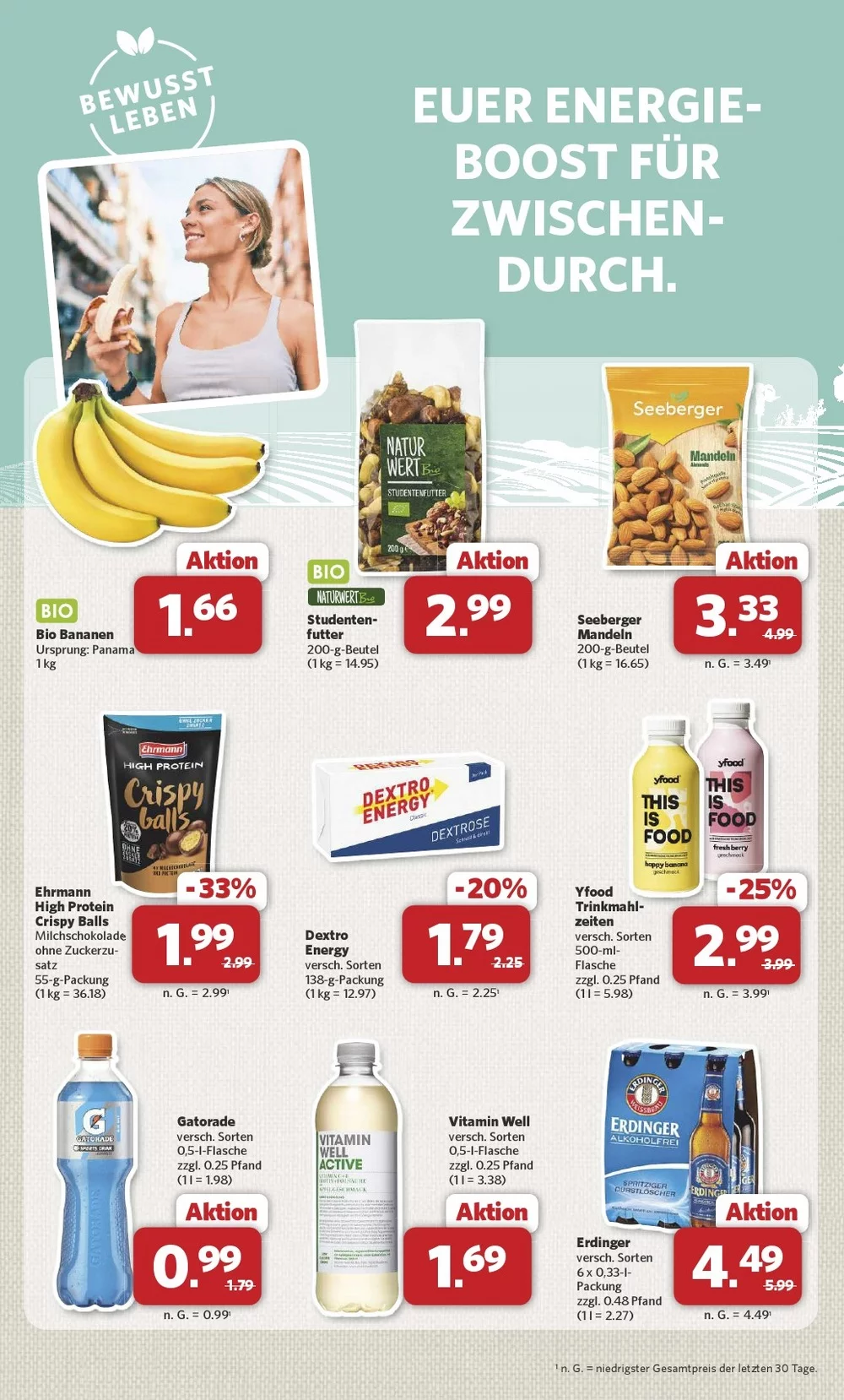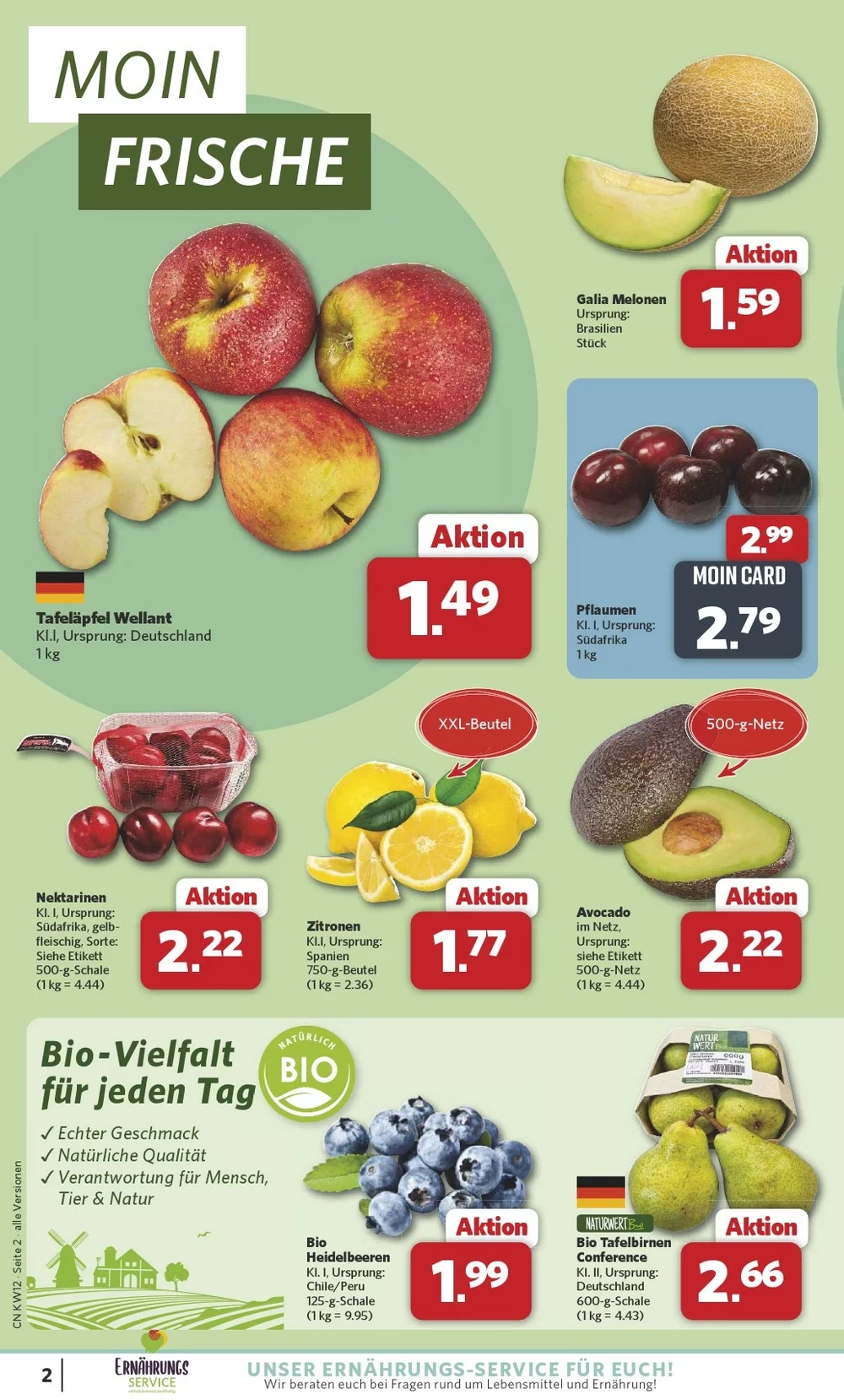 In der Mitte der Seite werden süße Desserts gezeigt. Besonders beliebt ist Ben & Jerry’s Eis (427–465 ml), das mit MOIN CARD für 3,79 € erhältlich ist ?. Außerdem sind Langnese Nogger Eis Multipacks stark reduziert und kosten nur 2,22 € – ein Rabatt von 43 % ?.