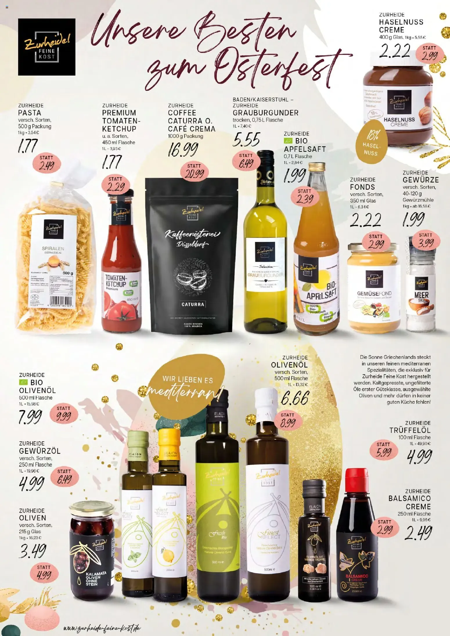 Im aktuellen Edeka Zurheide Düsseldorf Prospekt stehen hochwertige Feinkostartikel im Mittelpunkt ??. Unter dem Motto „Genuss für die Ostertafel“ präsentiert Zurheide eine Auswahl an edlen Ölen, Gewürzen und Delikatessen, die perfekt für besondere Anlässe geeignet sind ??️. Besonders gefragt sind das Trüffelöl für 4,99 €, Bio-Olivenöl für 7,99 € sowie feine Balsamico Creme für 2,49 €, die jede Küche aufwerten.