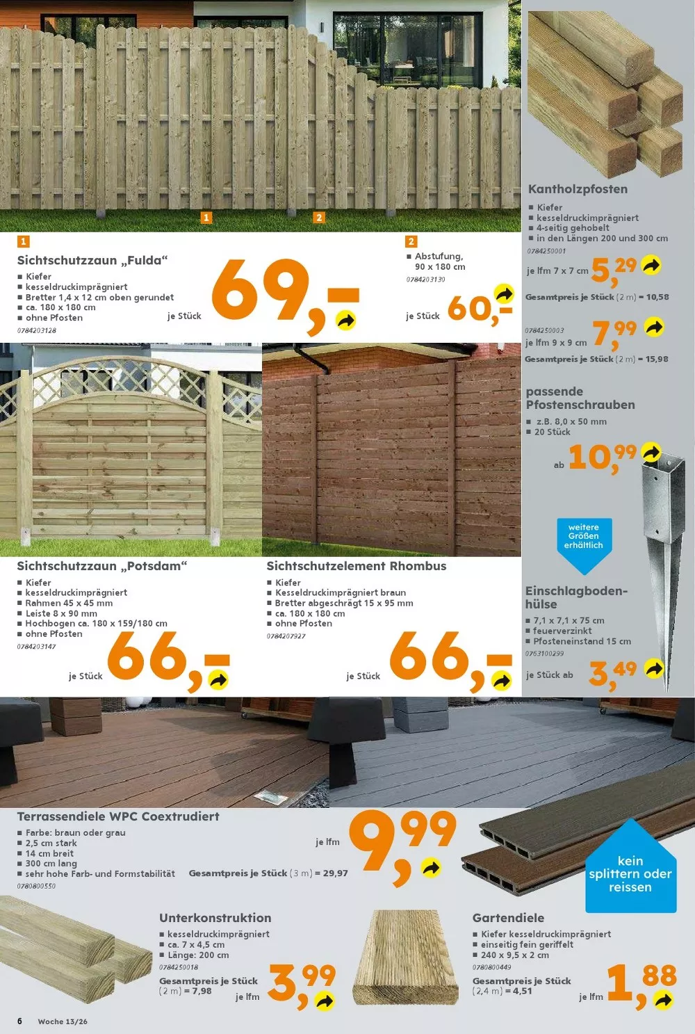 Im unteren Bereich des Prospekts finden sich außerdem Produkte für Tiere im Garten ?. Dazu zählen Meisenknödel im 75er-Pack für 12,99 €, ein großer Wildvogelmix 20 kg für 36,99 €, sowie Geflügelfutter und Teichsticks für Fische. Diese Produkte sind ideal, um Wildvögel oder Haustiere im Garten zu versorgen.
