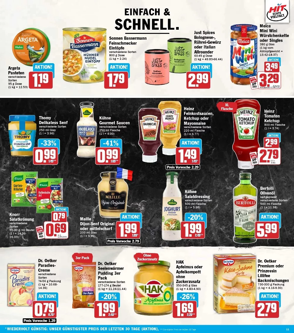 Für Salate und Küche gibt es Produkte von Leimer wie Croutons oder Semmelbrösel ebenfalls für 1 €. ? In der Pasta-Abteilung sind **Birkel Nudeln sowie passierte Tomaten von Pomito im Angebot – perfekt für schnelle Pasta-Gerichte. ??