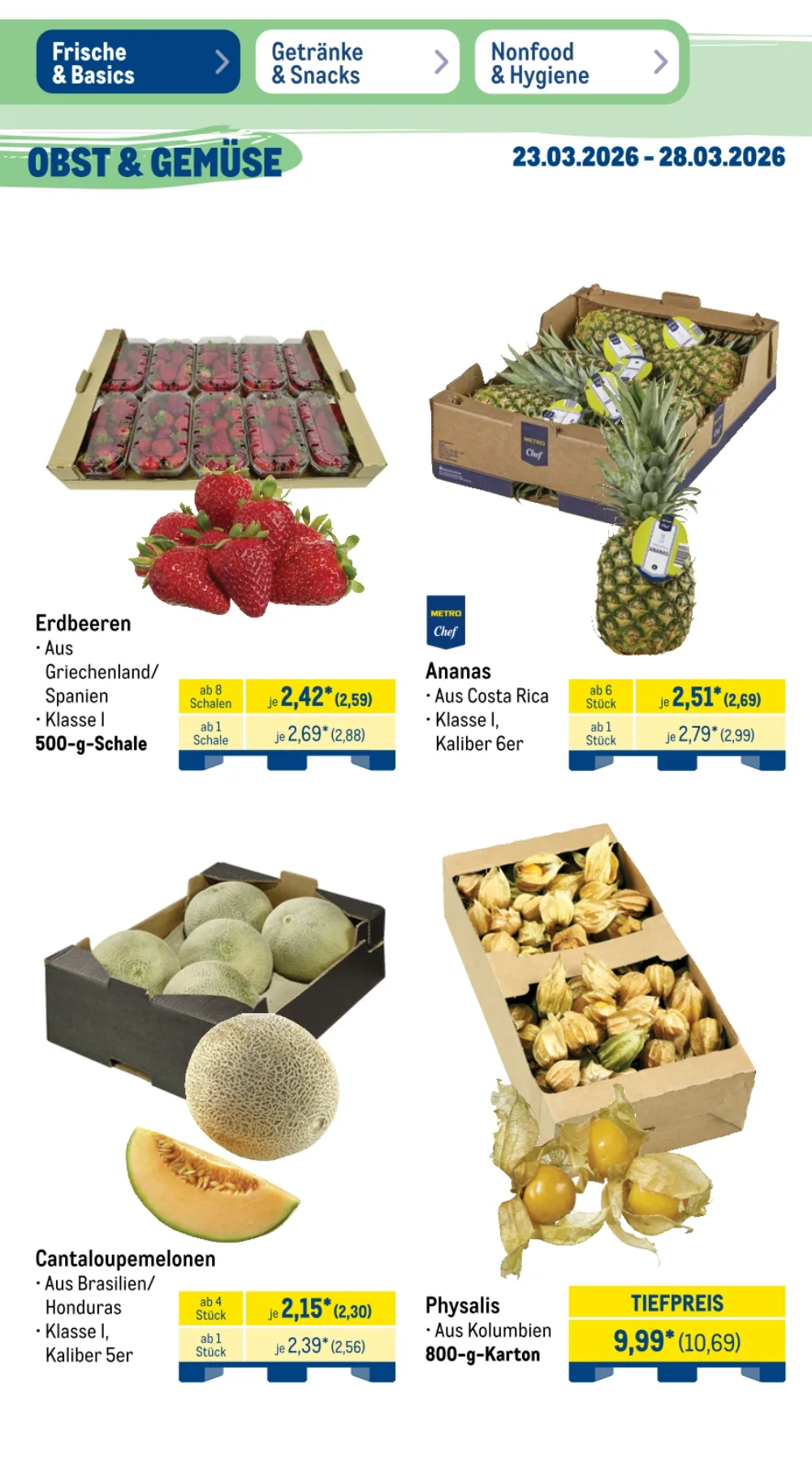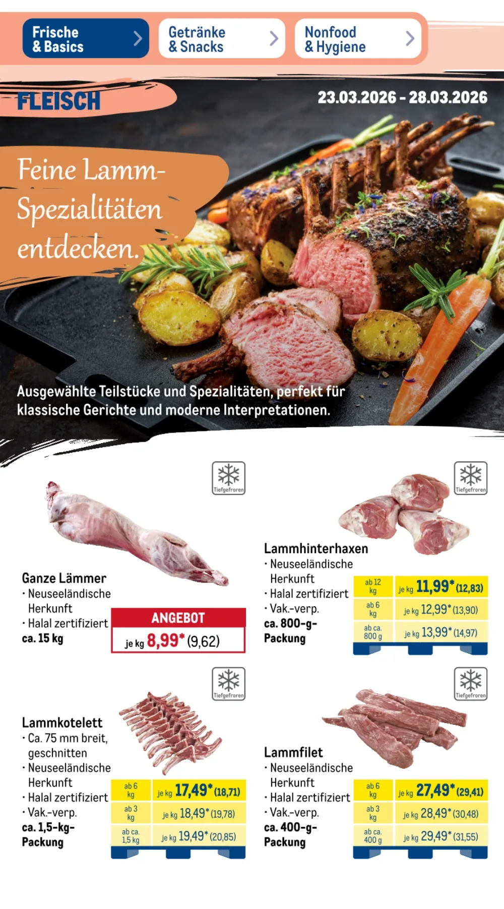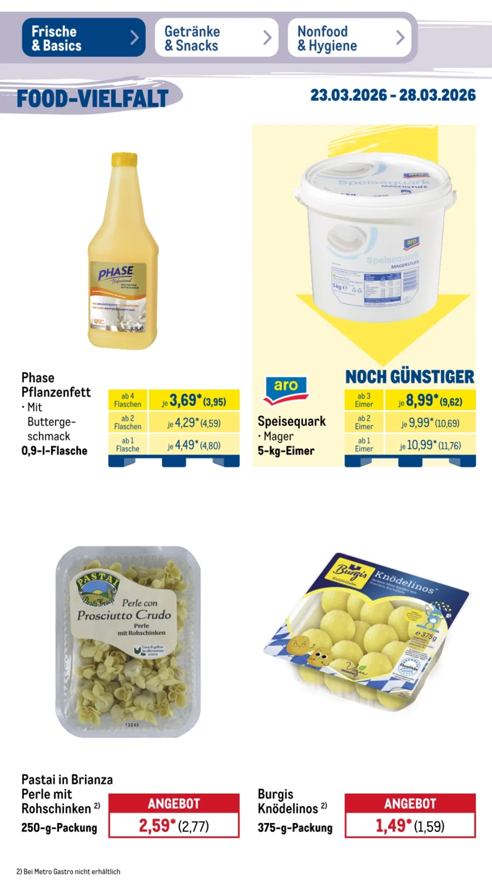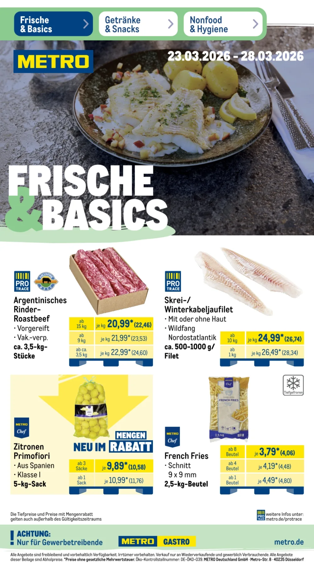 Der Prospekt Metro Angebote aktuell 23.03.2026 bis 28.03.2026 diese Woche präsentiert zahlreiche attraktive Deals für Gastronomie, Großverbraucher und alle, die hochwertige Lebensmittel zu günstigen Preisen suchen ?️. Besonders im Bereich Frische & Basics finden sich viele reduzierte Produkte, ideal für Restaurants oder größere Haushalte ?️.