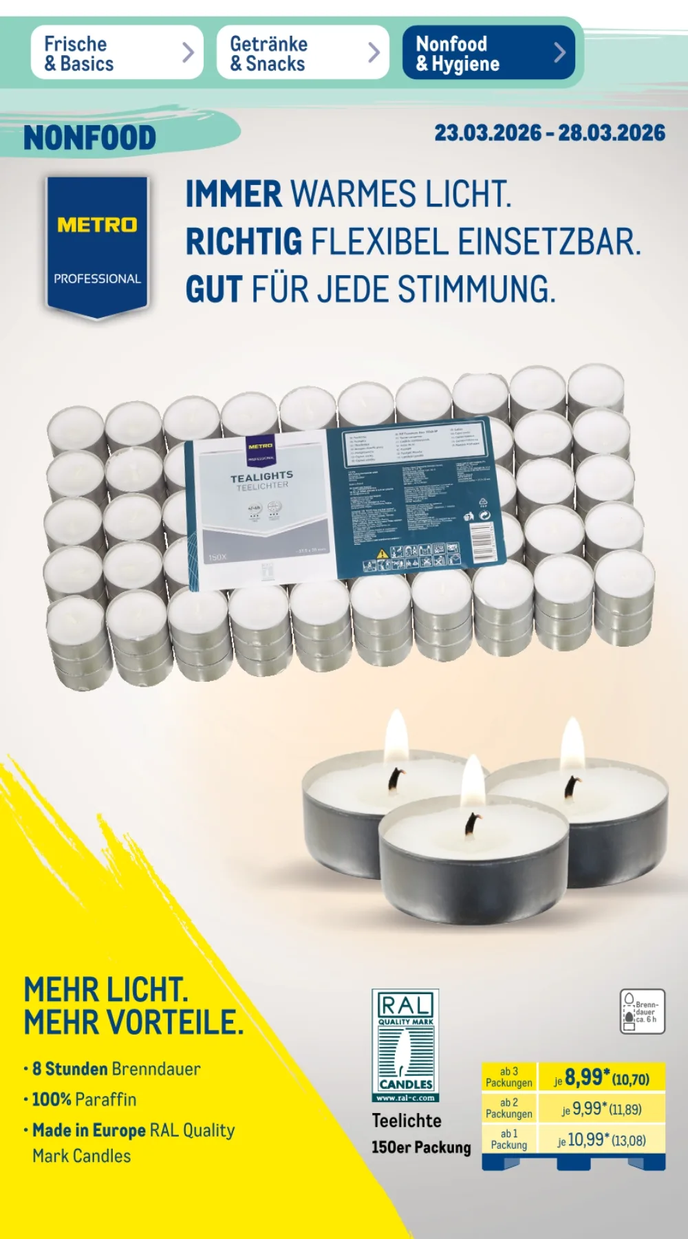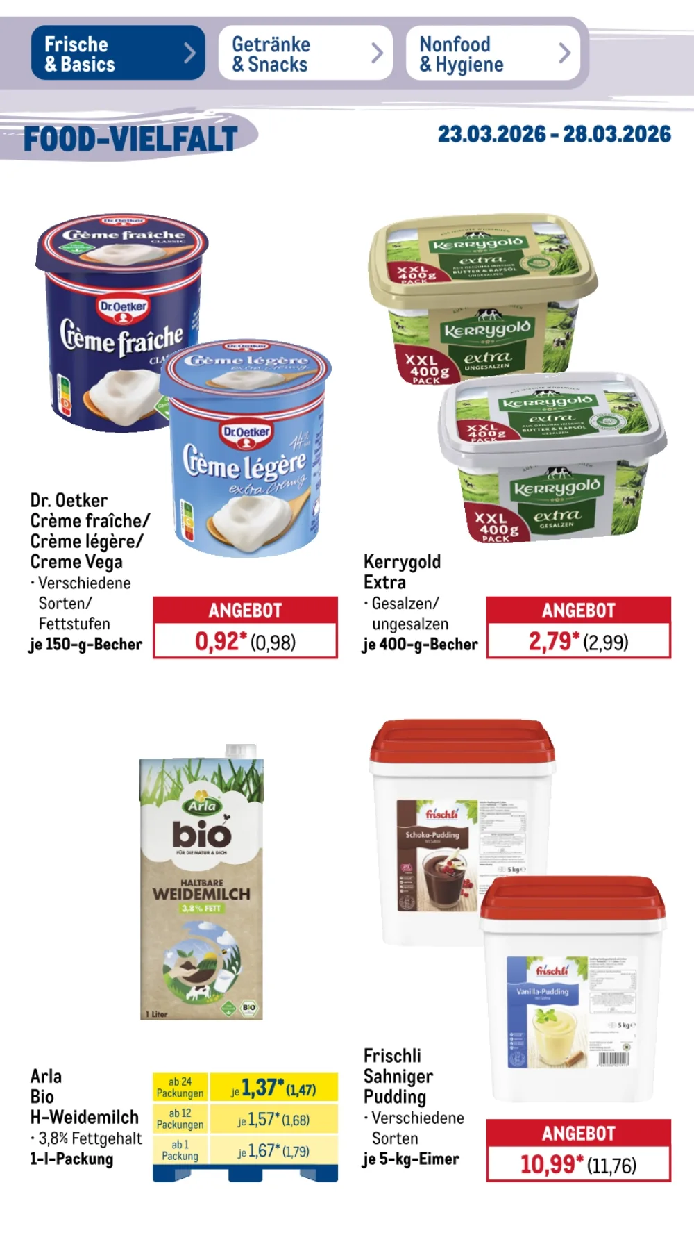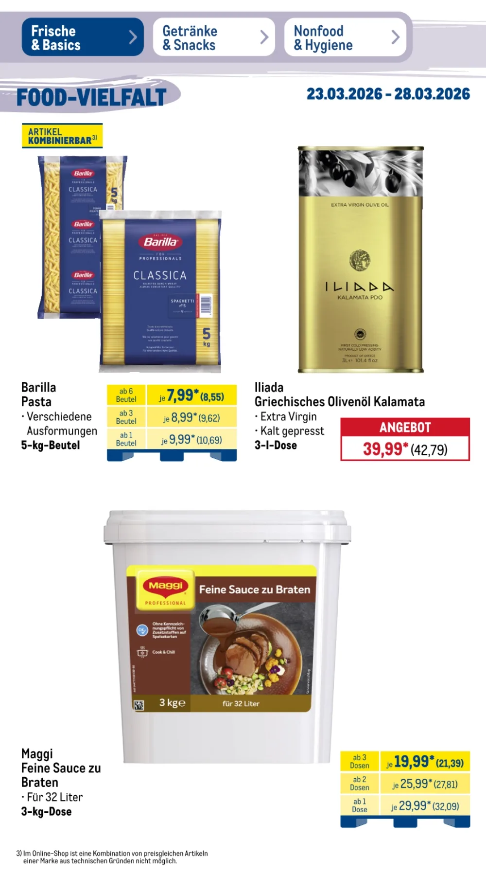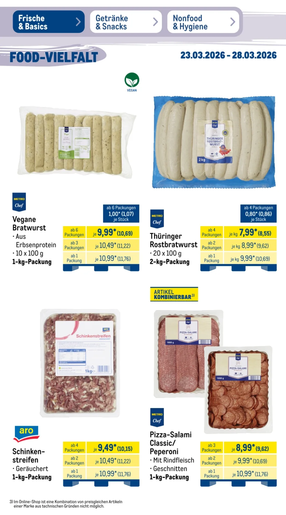 Der Prospekt Metro Angebote aktuell 23.03.2026 bis 28.03.2026 diese Woche präsentiert zahlreiche attraktive Deals für Gastronomie, Großverbraucher und alle, die hochwertige Lebensmittel zu günstigen Preisen suchen ?️. Besonders im Bereich Frische & Basics finden sich viele reduzierte Produkte, ideal für Restaurants oder größere Haushalte ?️.