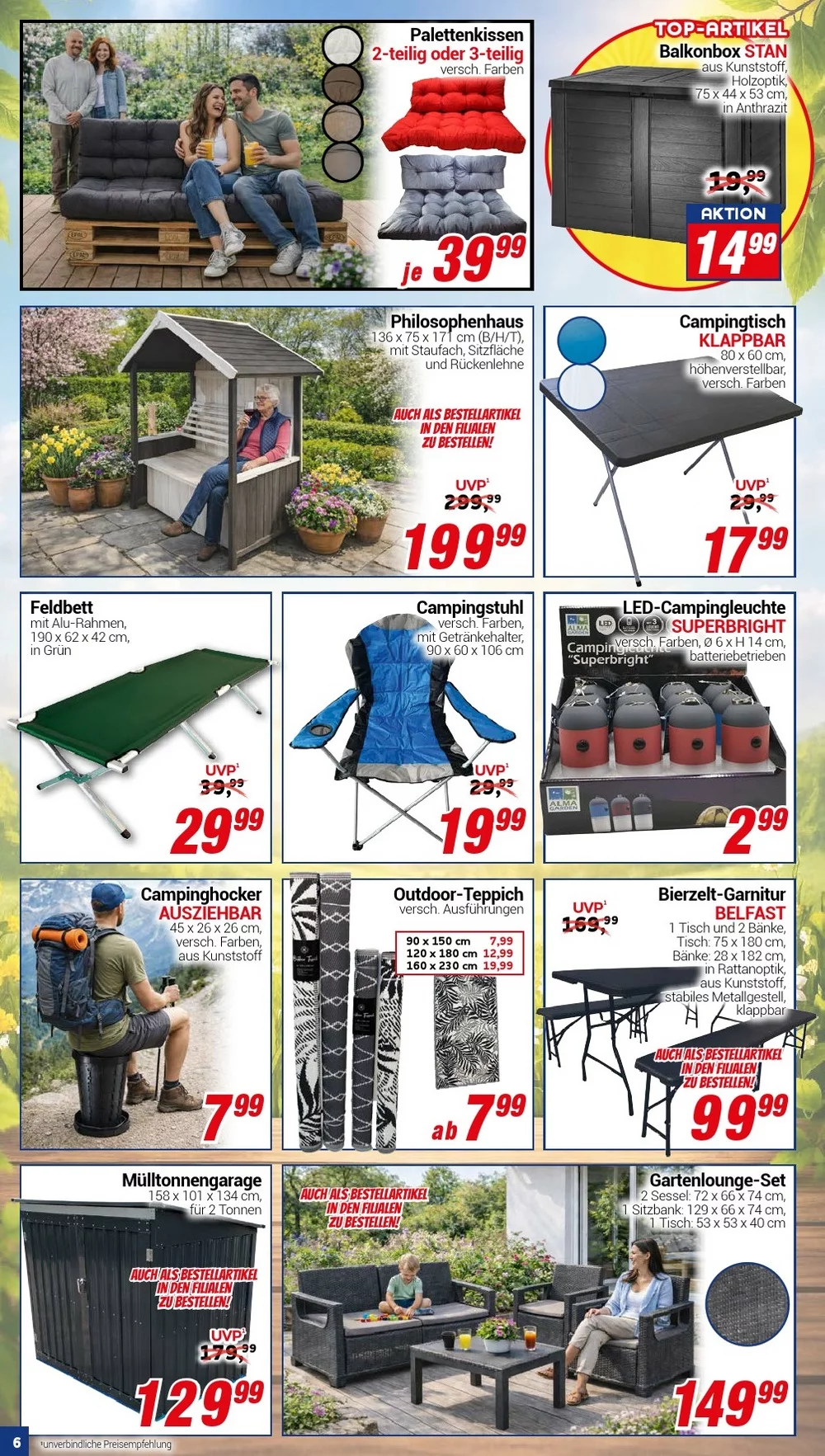 Auch Outdoor-Kochen wird im Prospekt beworben. Ein Dutch Oven (13,6 L) ist für 49,99 € erhältlich, während eine kleinere Version mit 4,5 L nur 29,99 € kostet ??. Für das perfekte Feuer wird Grillkohle (2,5 kg) bereits für 2,99 € angeboten.