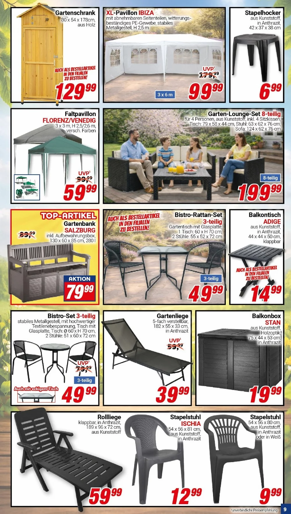 ? Auf einer typischen ersten Seite eines früheren Centershop Prospekts sieht man große Wochenangebote mit auffälligen Preisfeldern. Häufig werden saisonale Artikel wie Frühlingsblumen oder Gartenpflanzen, praktische Haushaltsprodukte, Aufbewahrungsboxen oder kleine Möbelstücke präsentiert ??. Daneben erscheinen reduzierte Aktionsartikel wie Küchenregale, Fugenbürsten oder Dekoartikel, die mit roten Rabattpreisen hervorgehoben sind.