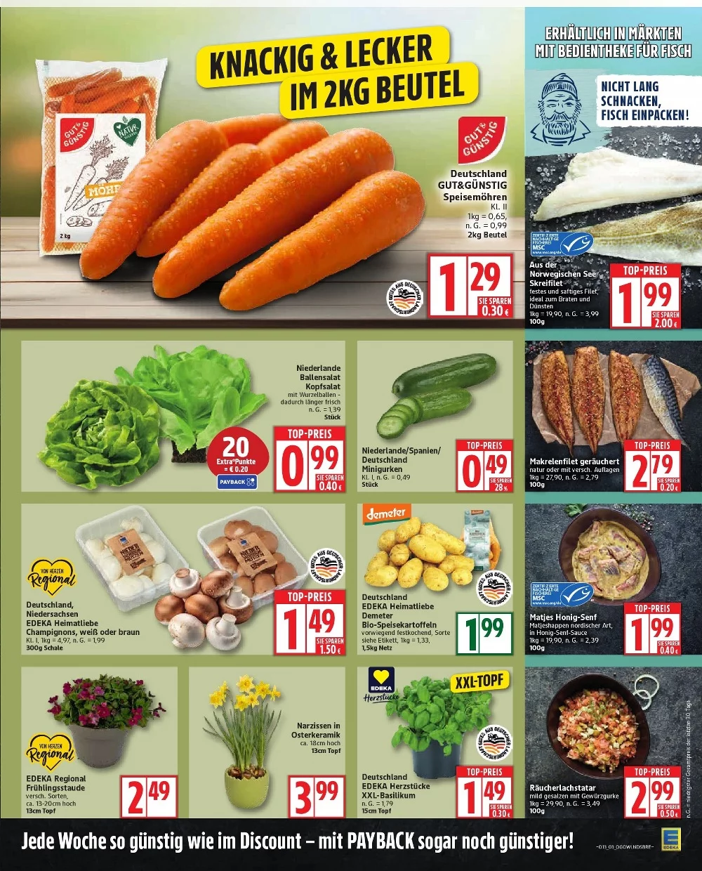 ?? Zusätzlich zeigt die Titelseite oft saisonale Lebensmittel und regionale Produkte – etwa frisches Gemüse, Salate oder Kartoffeln. Diese Angebote sind ideal für den Wocheneinkauf und bieten eine gute Mischung aus Qualität und günstigen Preisen.