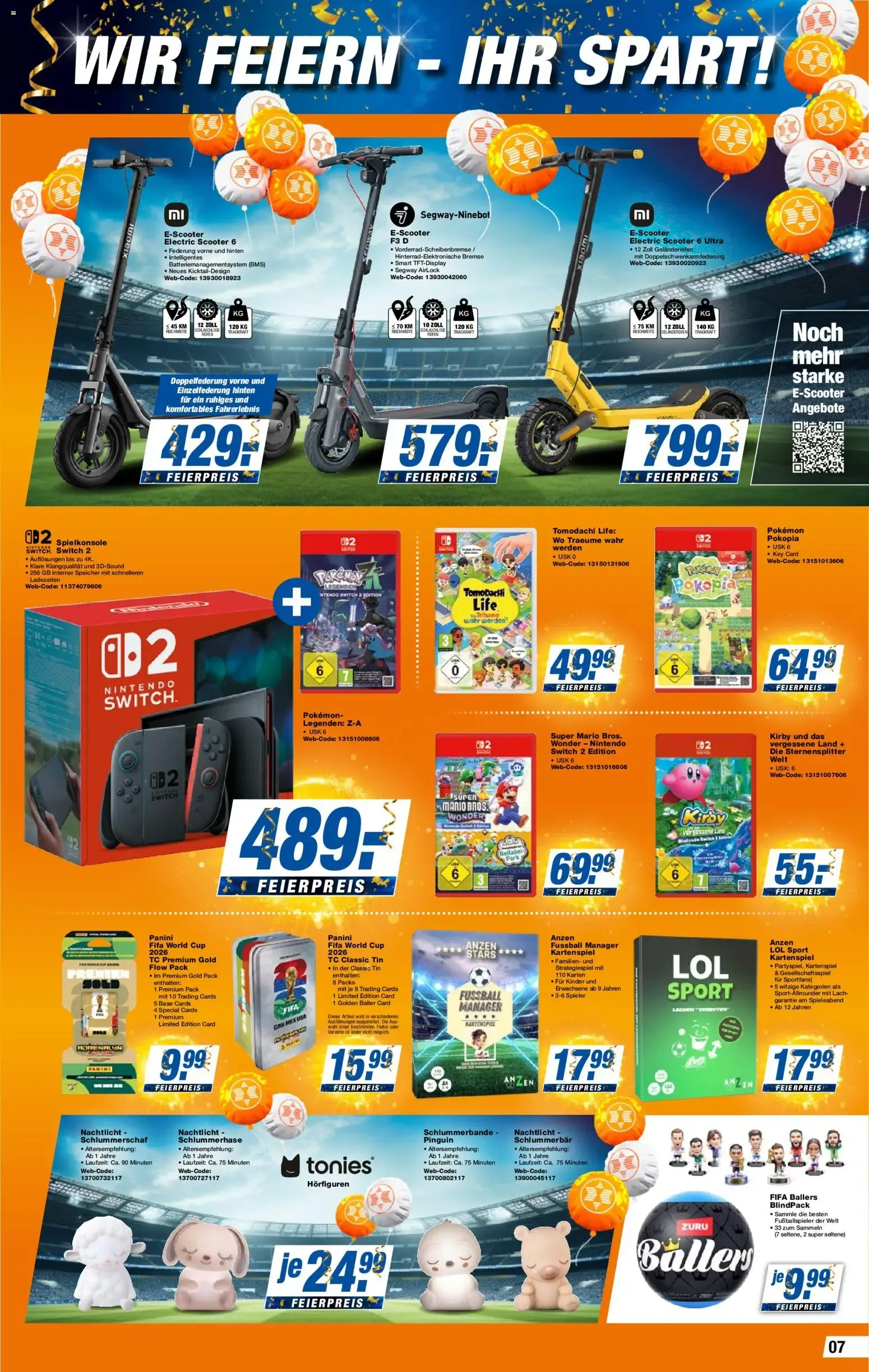 Unter dem sportlichen Motto „WIR FEIERN – IHR SPART!“ verwandelt sich Ihr Wohnzimmer pünktlich zu den kommenden Fußball-Highlights in eine echte VIP-Lounge. ⚽🏟️ Der absolute Star auf dieser aktuellen Katalogseite ist der gigantische LG OLED65G59LS 4K-Fernseher (65 Zoll / 164 cm). Diesen Premium-TV ergattern Sie zum unfassbaren Feierpreis von nur 1.599 € – das sind unglaubliche 60 % Rabatt gegenüber der UVP! 🤯 Wer es etwas kompakter mag, greift zur 55-Zoll-Variante für 1.149 €. Als besonderes Extra kommen diese Modelle mit einer bequemen Gratis-Lieferung direkt zu Ihnen nach Hause. 🚚