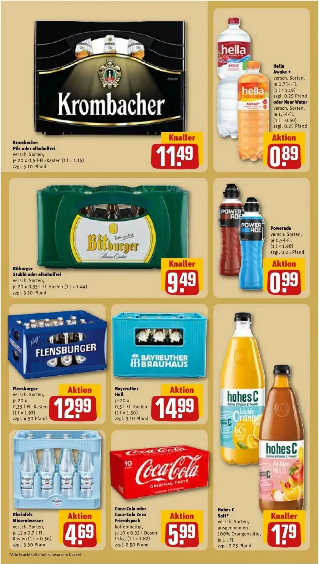 Weitere Highlights im Rewe Prospekt diese Woche sind Smirnoff Premium Vodka für 9,99 €, Osborne Veterano für 9,99 € sowie Moskovskaya Vodka & Lemon für 1,99 € pro Dose ?. Weinliebhaber profitieren von attraktiven Angeboten wie Novantaceppi Primitivo IGT für 4,99 €, Rasgón für 2,99 € oder La Gioiosa Vino Frizzante ebenfalls für 2,99 € ?. Auch Mumm Jahrgangssekt ist für nur 3,99 € im Angebot – ideal für besondere Anlässe ?.